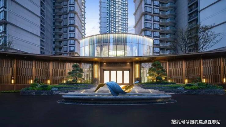 约46米的酒店式落客门庭,奢华的天然石材,搭配金属格珊、艺术雕塑,质感铺面而来。