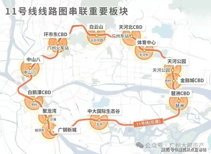 11号线是广州第一条的超级环线,市中心的“换乘之王”,直接圈定城市价值的“地段一环”。