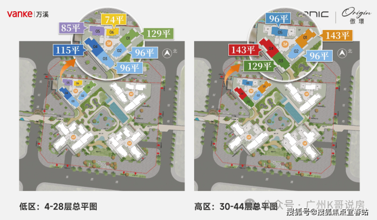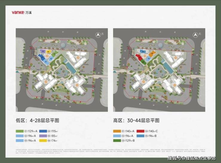 30-44层为高区,2T5,包括96-129-140㎡户型。