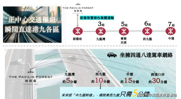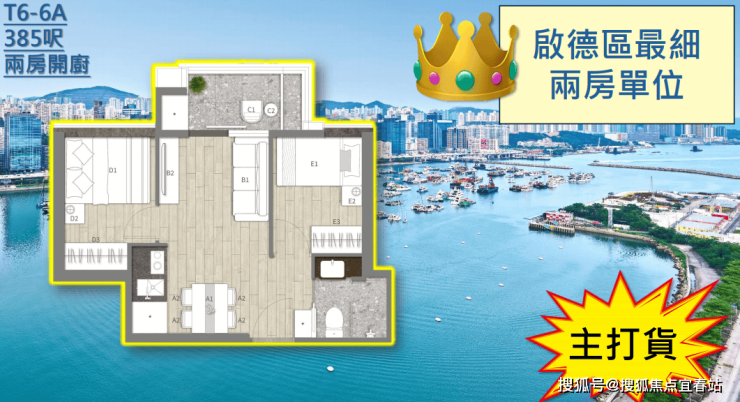 位置优越:位于启德跑道区临海前端,三面环海,可观维港海景,毗邻九龙城等商圈,步行可达港铁启德站,交通便捷。