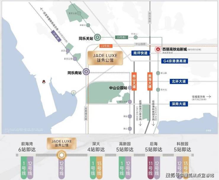 15号线同乐关站(在建中,预计2028年12月开通),串联宝中/前海/深圳湾/西丽,也被称为深圳“一环线”,本项目为环线上的重要一环;