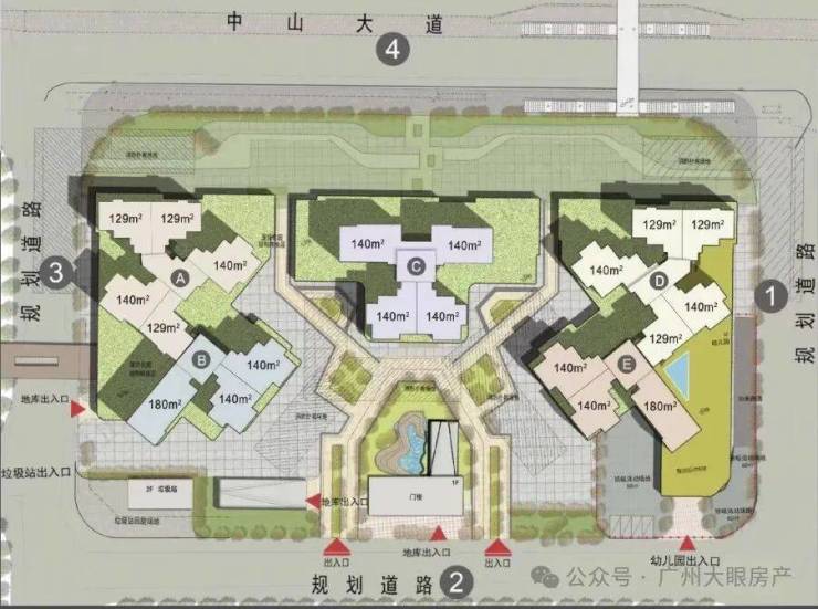 珠江天骊共建5栋塔楼,都是32层高,由于小区北向临近中山大道,因此项目北向房间会有一定噪音,南向望小区花园会比较安静