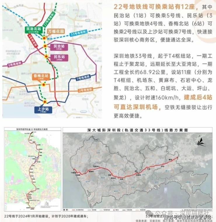 🚇地铁:22/33号线民治北站大门口(在建,33号线预计2026年,22号线预计2028年)5号线五和/民治地铁站1.5公里(现有)