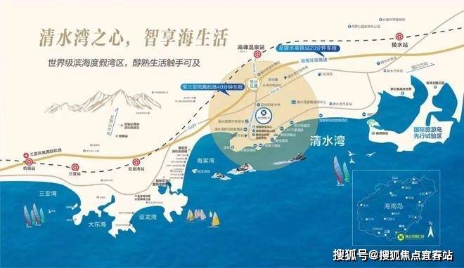 项目地处北纬18°以南,距三亚市区直线距离约45公里,尊踞大三亚醇熟生活圈;位于清水湾度假区中央核心,坐拥清水湾万亩文旅醇熟配套,紧邻陵水黎安国际教育创新试验区,致力于打造清水湾片区产品标杆。
