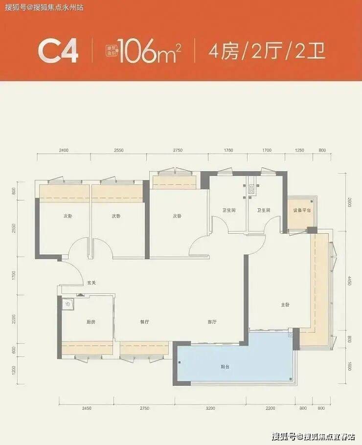建面约106㎡大四房户型使用率提升至103%,更是将改善需求做到极致。三个次卧均赠送进深约0.8米观景飘窗,主卧赠送2个进深约0.8米的飘窗,L型飘窗设计,加上约2㎡的设备平台、约5.4米超大观景阳台贯通客厅与主卧,“双阳台+双飘窗”让室内外景观浑然天成,形成真正的无界景观面。