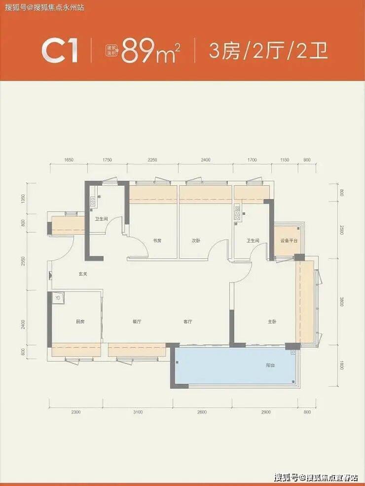 89㎡横厅户型:5.5米超大阳台+双飘窗设计,得房率101%,堪比106㎡改善型住宅。