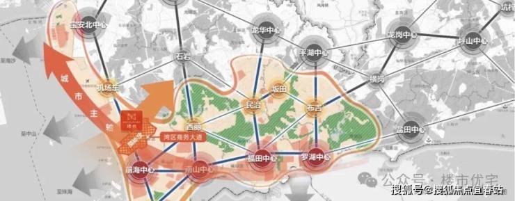 深圳城市主轴自罗湖、福田、南山一路向西迭代,4.0城市新中心落定前海宝中。