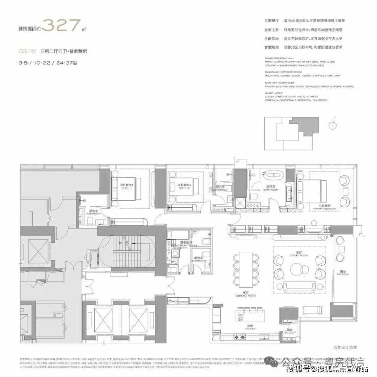 * 主力户型:303㎡、326㎡、404㎡、567㎡等大平层,最大户型达1000㎡