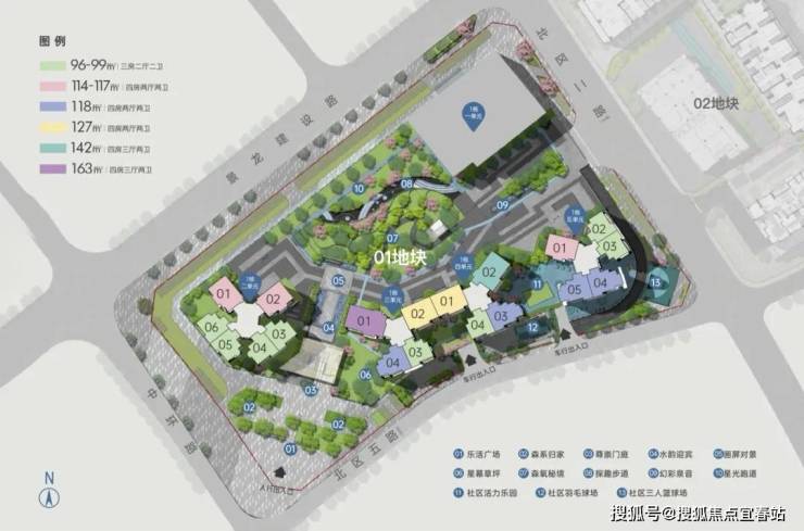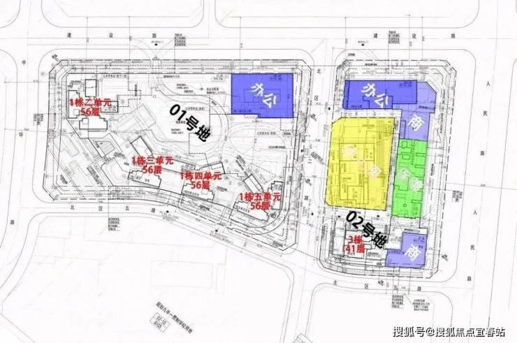 01-01地块占地约1.93万㎡,总建筑面积约23.8万㎡,容积率为8.81,绿化率为40.01%。该地块由1栋40层的办公单元和4栋56层的住宅单元,还规划有公交首末站。地块总规划980户,住宅单元设计为3梯4户、3梯5户和3梯6户,规划停车位1533个。