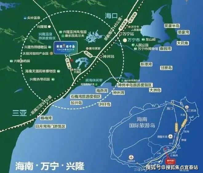 ⭐交通便利:项目距离三亚97公里、海口145公里,贯穿海口、三亚的东线高铁距离项目最近的神州站只有4.5公里。乘坐动车到海口美兰机场只需1个小时,到三亚只需半个小时;