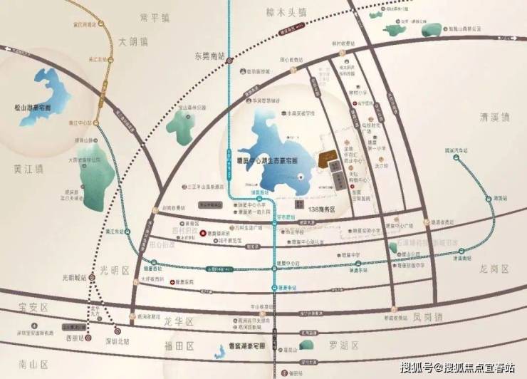 值得一提的是,区域内规划地铁R1线支线和R4线,未来R1线支线将与深圳地铁22号线接驳,联通东莞和深圳的公共交通。