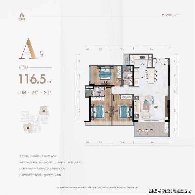 -116-146㎡三至四房:4.5米阔绰客厅,餐客独立分明,空间实用主义与仪式感并存。