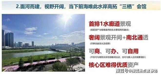坐拥一线河景景观,可以观赏180°前湾河全景视野,邂逅浪漫的诗意日常,非常适合年轻群体的生活方式。