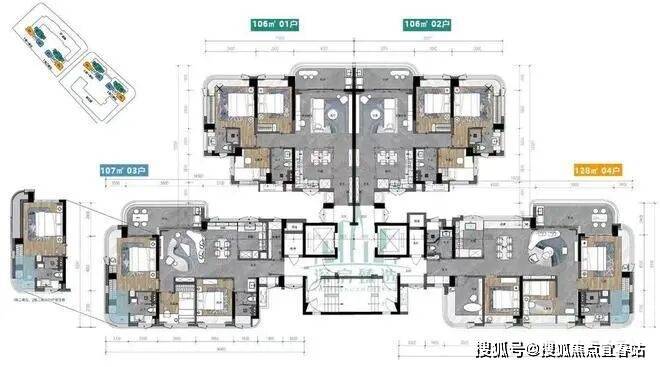 瑧玺共推出三个面积段,分别是建面约106㎡的3房2厅2卫、建面约107㎡的3+1房2厅2卫、建面约128㎡的4房2厅2卫,拓展后的实际使用率高达91%-95%。由于设计为低密度小高层,公摊面积少,使用率高。