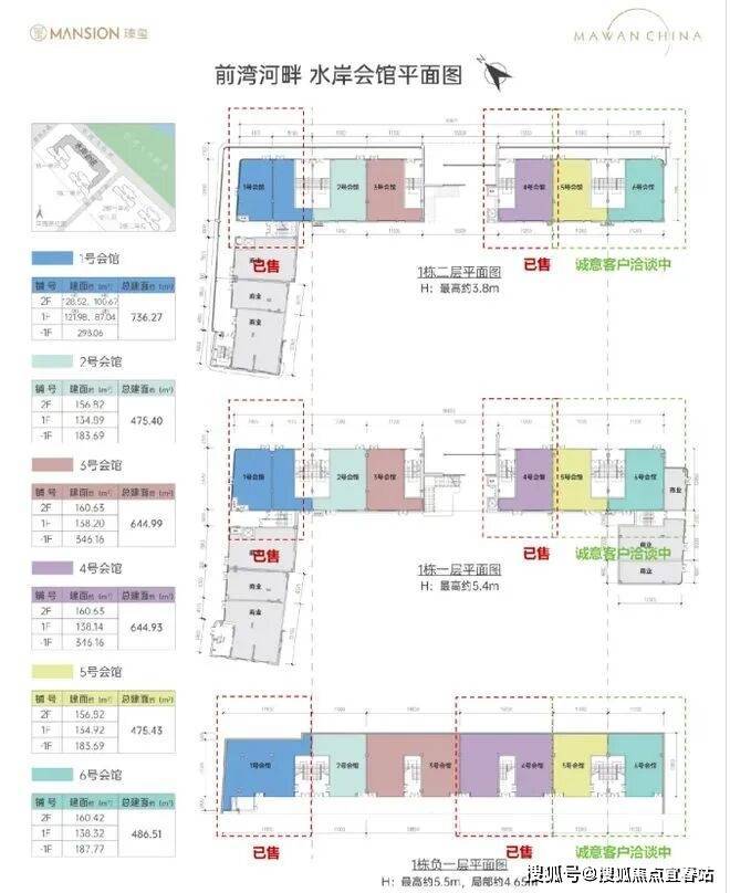 产品定位为水岸全能商务会馆,位于前海瑧玺1栋,建面约475-736㎡(共6套,20本证)