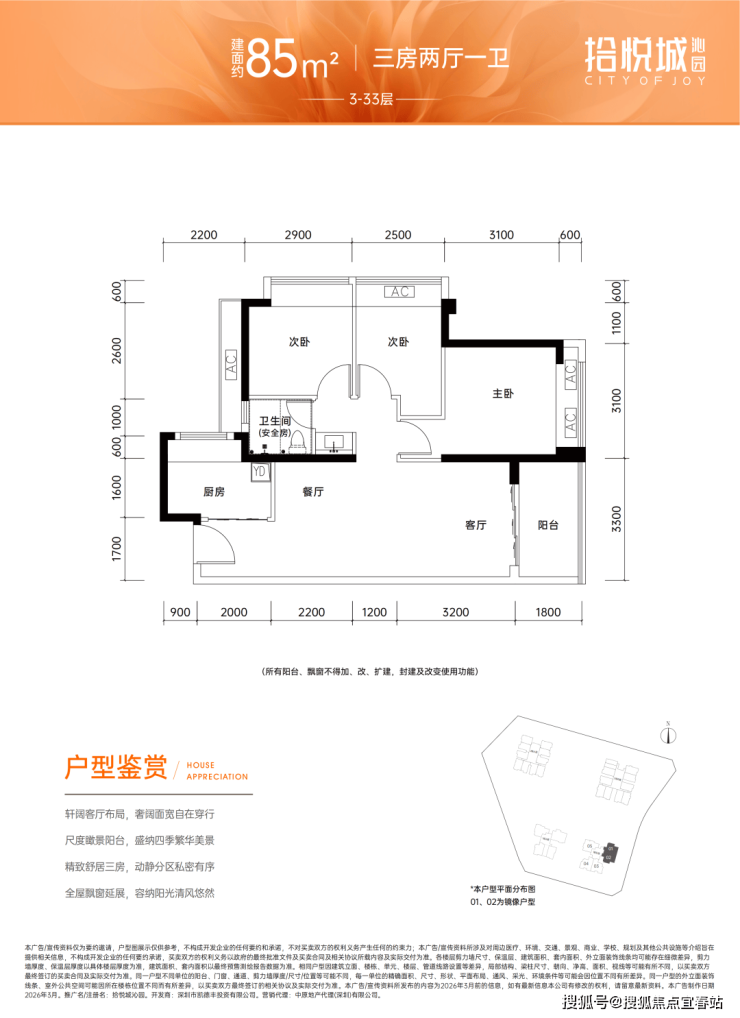 免责声明:本资料所载文字、数据、图片等内容,仅为项目宣传示意,不构成要约或承诺。相关信息可能因政府规划、政策调整等发生变化,房屋具体信息以书面购房合同及政府最终审批文件为准。开发商保留对本资料的修改权,敬请留意最新信息。