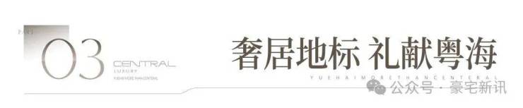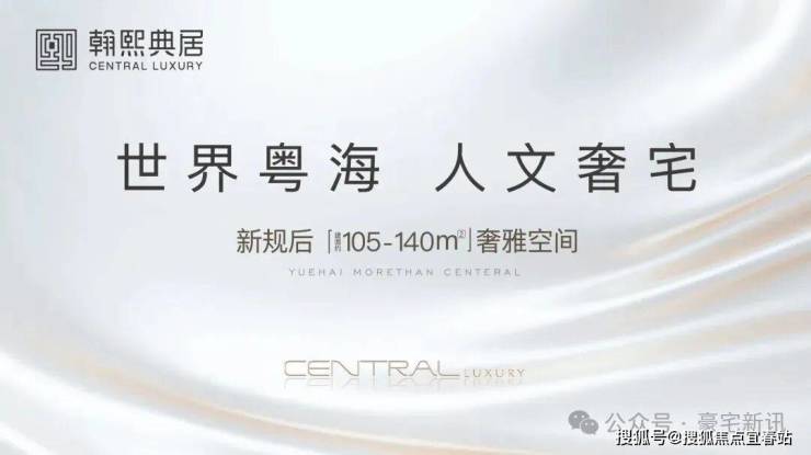 奢阔空间丨中心极境 礼献粤海 翰熙典居,粤海十年之后再上新,全新奢居综合体礼献峯层。可售主力户型新规后建面约105-140㎡奢雅空间,全明方正户型将空间奢阔感与生活舒适度完美契合。明星户型超6米阳台开间,全维度巨幕景观视野,尽揽湾心万千风景。