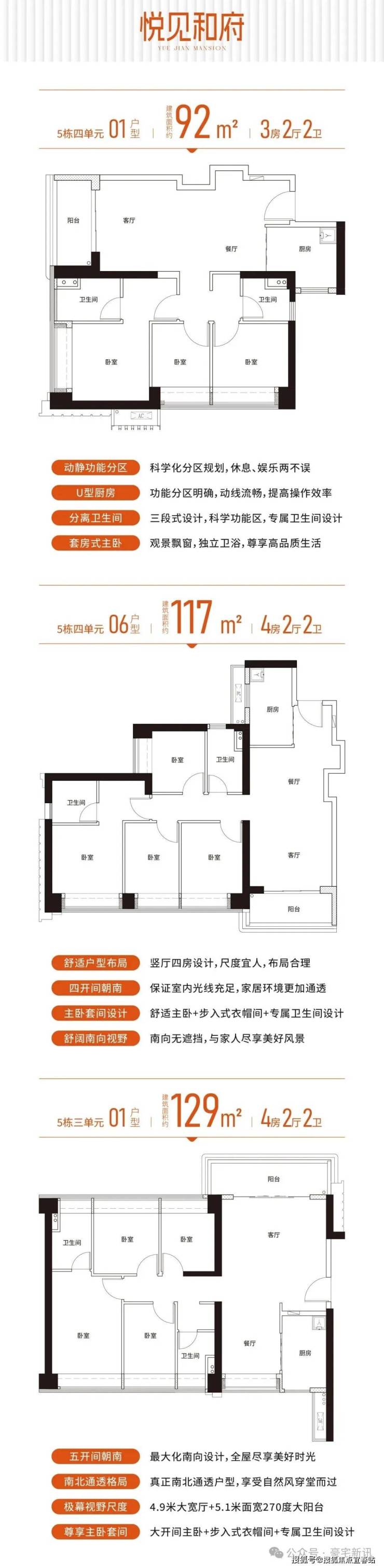 【产品面积】建面约92-129m²3-4房