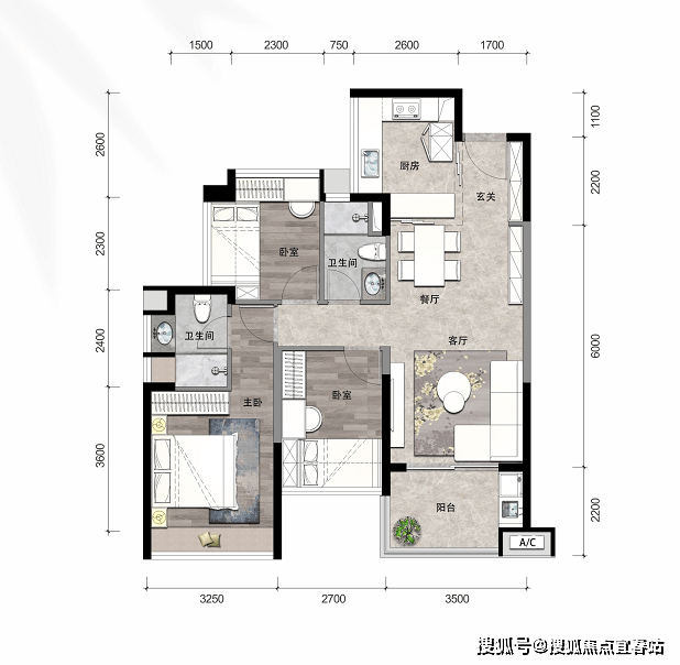 2、【慧月】79㎡横厅,3房2厅1卫