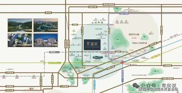 深业泰瑞府,位于龙岗大运新城如意路与龙飞大道交汇处北侧,周边都是近年新建的高档住宅小区,邻近深惠城际“大运北站”+16号地铁线“龙城公园站”。