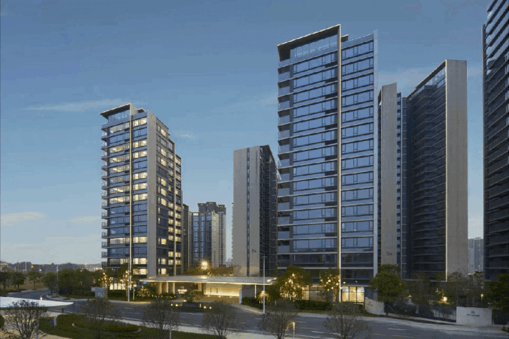 项目采用全玻璃幕墙设计,打破边界感,与自然无界共融,大面积玻璃与精致线条结合,让建筑宛如公园中的水晶盒子,减少大尺度建筑的压迫感,结合大面积园林,带来舒适的空间感受,像面向中央园林的一线楼栋,园林景观面可达 280 米。