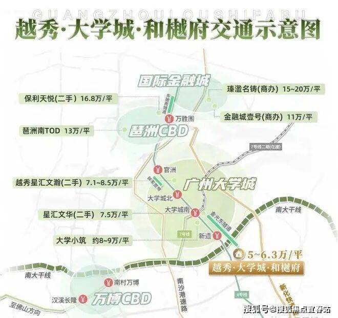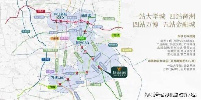 自驾方面,南大干线已开通,串联起广州南站、汉溪长隆、万博 CBD、大学城、国际创新城、广汽基地等番禺核心板块,5 分钟可直达万博中心;金光东隧道也已通车,5 分钟直通大学城一期,实现大学城一二期资源的链接与整合。