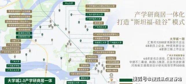 该板块被称为大学城 2.0 版本,规划有大学智慧谷系列、产业孵化基地、化龙农业大观园、广州大学城科技创新产业园、广州国际商业展贸城等。相比大学城 1.0,这里更注重产业发展,尽管目前还在规划建设中,但未来发展潜力巨大,随着各项规划的逐步落地,区域价值有望不断提升。