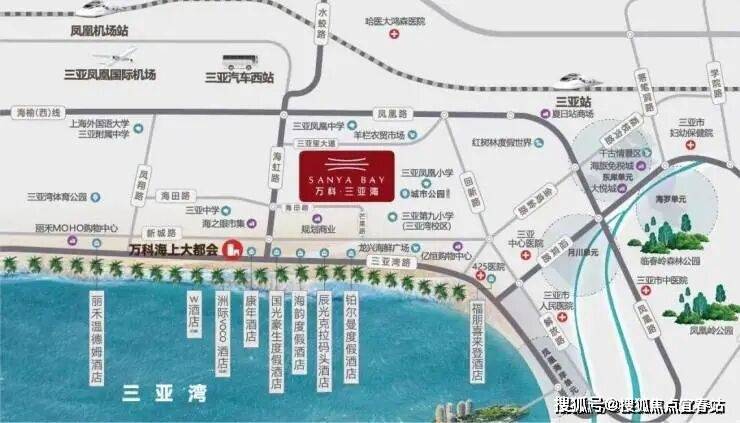 大中华首家度假型W酒店(在建中)、洲际Voco酒店(在建中)、三亚康年酒店、国光豪生、三亚湾铂尔曼、三亚湾皇冠假日等十余家高端度假酒店错落分布四周。高奢酒店严苛的选址标准从来都是“非核心 不落定”,皆看好三亚湾地段资源及发展潜力。
