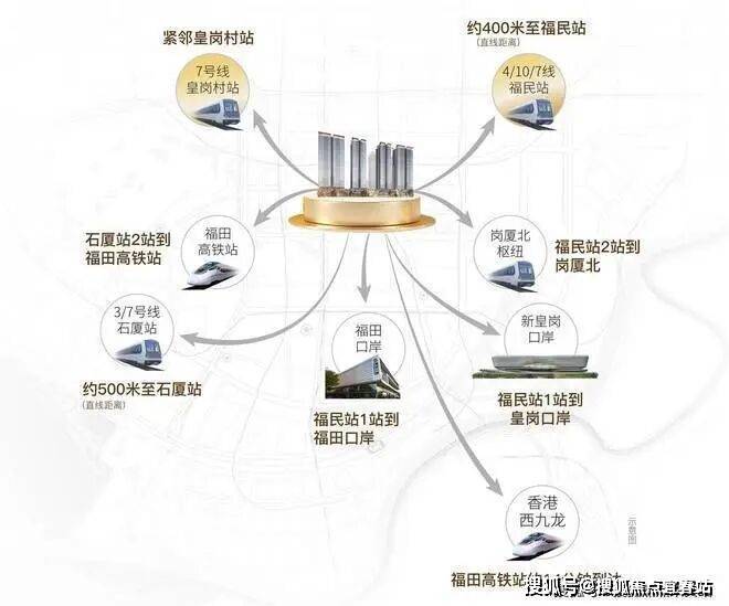 ·1站双口岸 ·2站福田高铁站 ·2站岗厦北枢纽 ·双地铁口,四地铁线