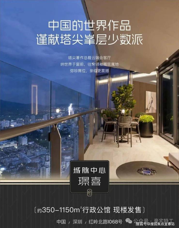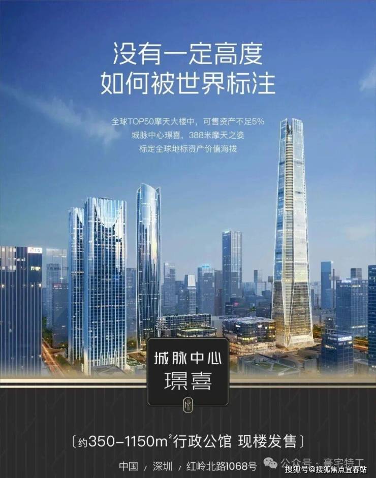 当摩天资产成为国际流通的“价值护照" 世界塔尖的目光,正聚焦中国。 ◆ 全球地标 天际资产◆ 388米深圳天际线地标 城脉中心·璟喜 正以中国资产的世界叙事 重构全球财富坐标 ◆ 超级区位底盘◆ 深圳黄金中轴、世界级金融街之上 福田、罗湖、香港三区资源中心 立足百万方城脉汇的高端商圈配套 铸就璟喜不可复制的资源王座 ◆总裁级行政公馆 ◆ SCDA&CCD双大师设计大平层 户户自带40㎡私人观景台 不仅是纯粹的空间占有 更总裁是对话世界的云端会客厅 匹配全球资产买家眼界与品味