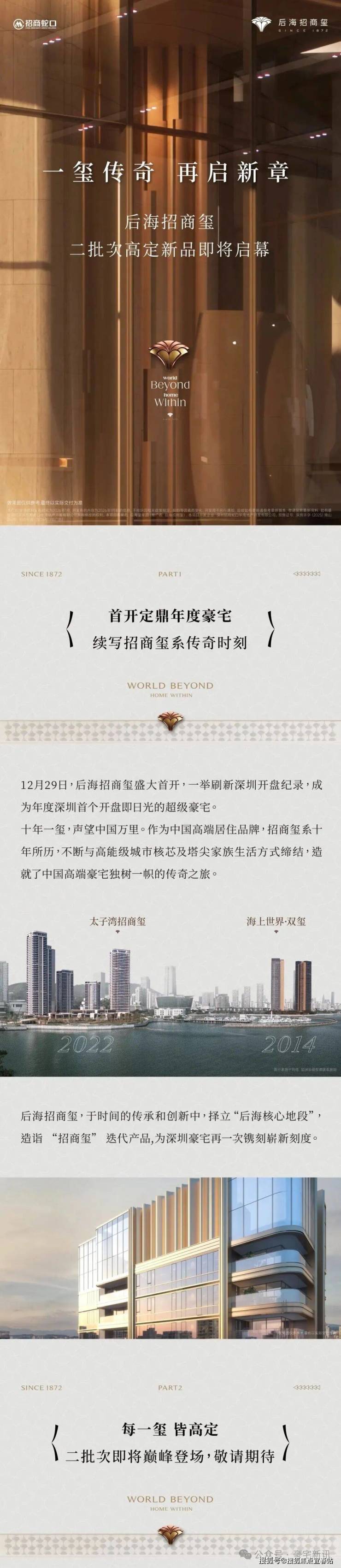 后海招商玺是招商蛇口继“5000万蹲”的深圳双玺和“交付天花板”太子湾招商玺之后,“玺系”产品的全新力作,被视作玺系3.0的范本。