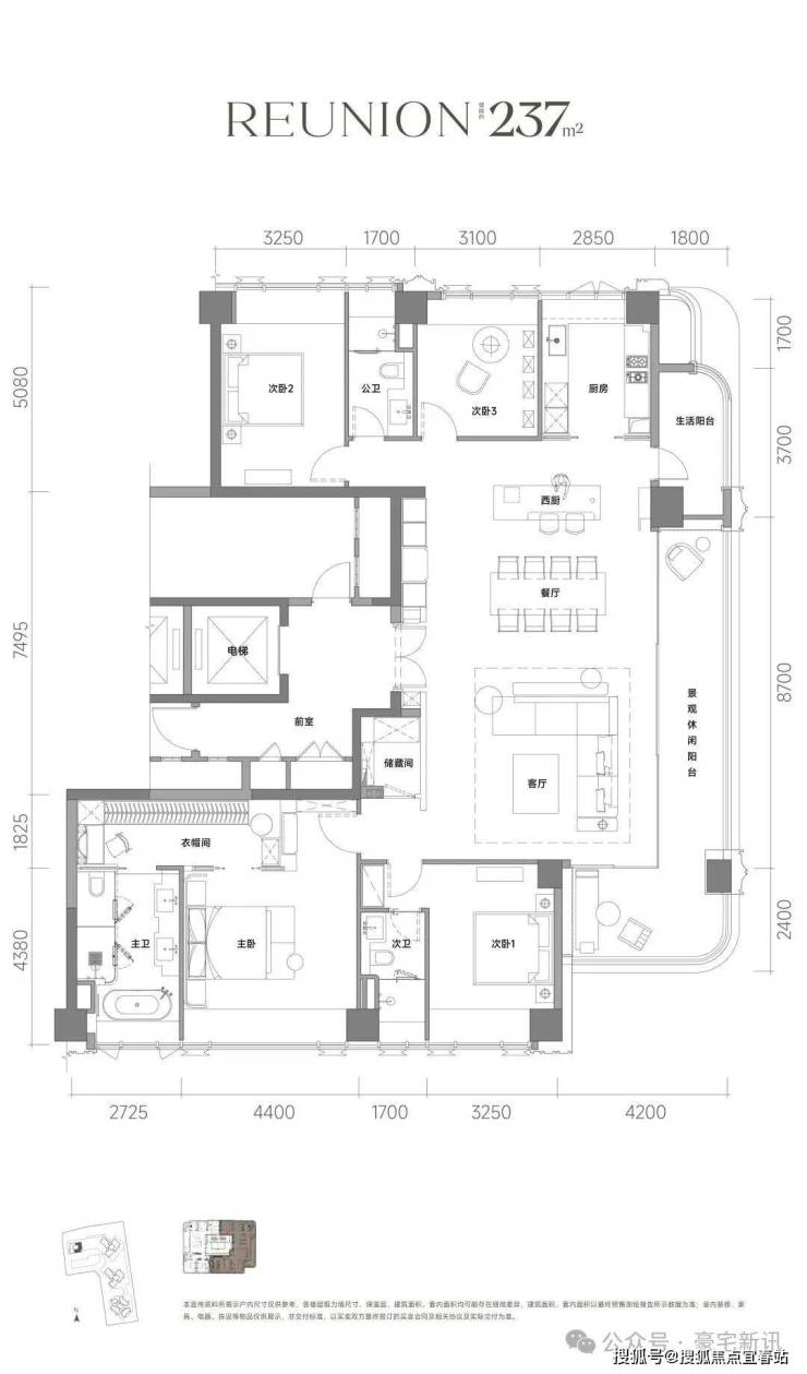 项目占地约1.5万㎡,总建面约15万㎡,由4栋住宅及1所幼儿园组成。商品房总计仅261户,户均面积约218㎡,主打约188-247㎡纯粹大平层社区。