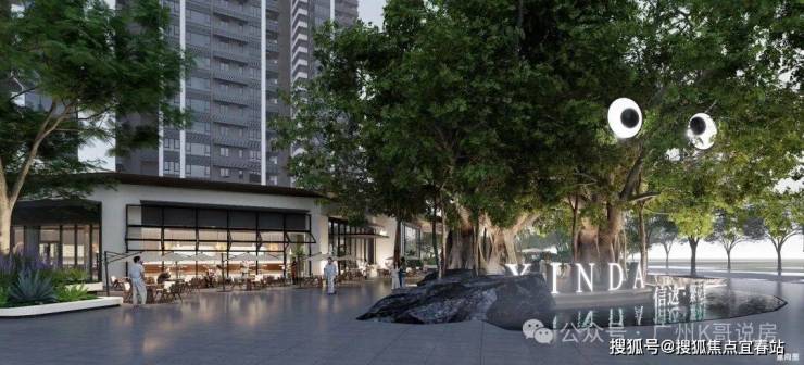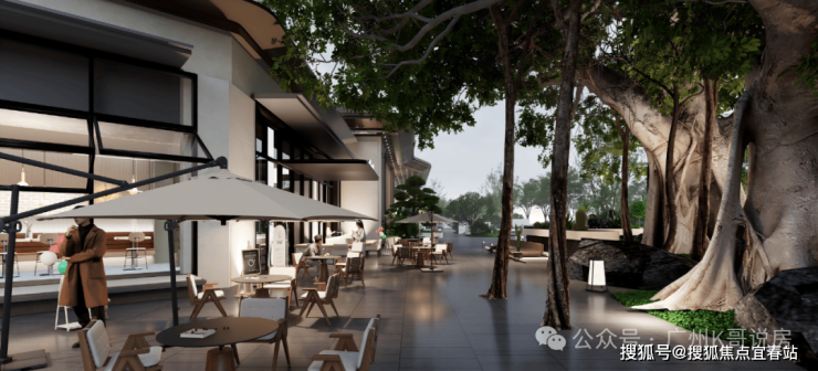 大门处保留百年榕树,打造休闲空间“榕悦广场”,休闲社交超自在!