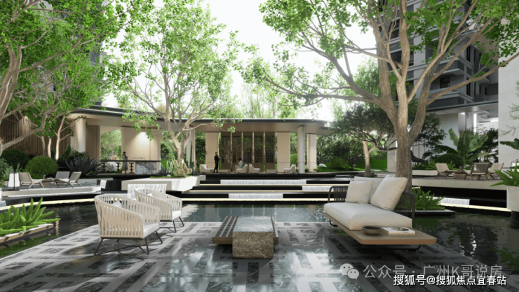 「水月芳屿」静雅会客厅:亭廊浮水,水景影月,传统礼序与轻奢时尚完美融合,归家待客皆享从容。