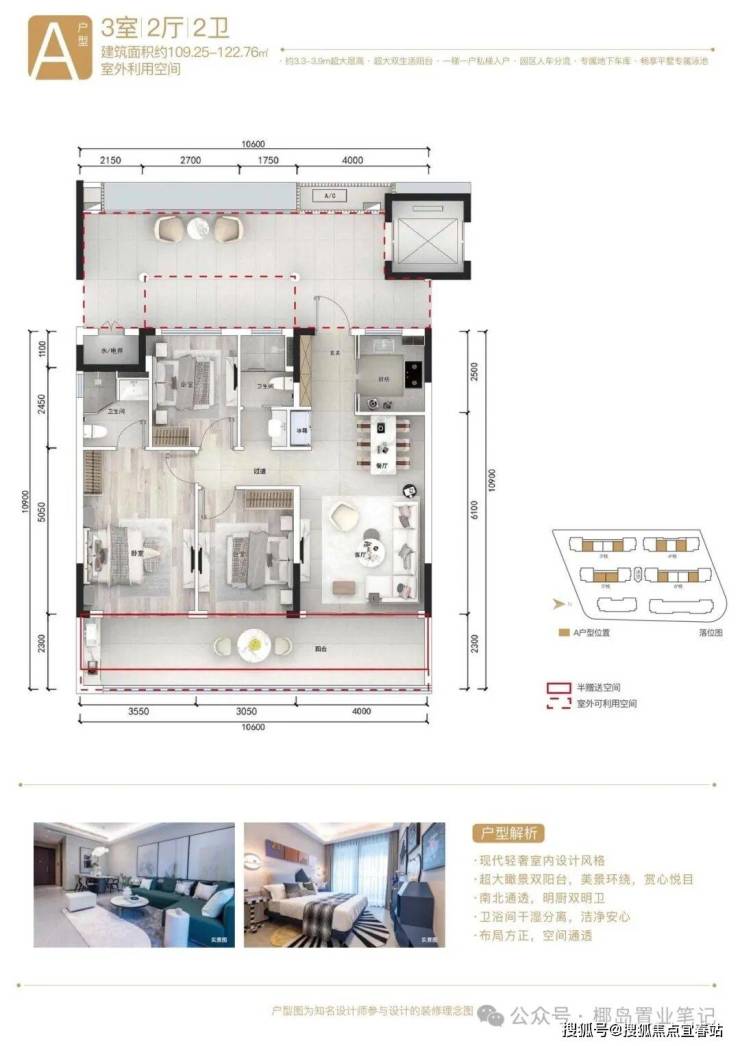 平墅:约115—168㎡ 3.9米层高现房平墅,南北双露台