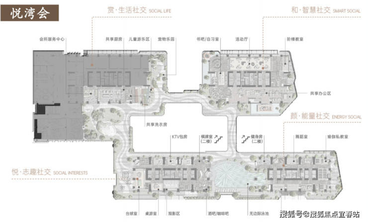 不仅打造了健身房、图书馆、自习室等常规配套,还打造了无边际泳池、咖啡厅、酒吧、电影院、共享厨房、KTV包房、桌游室等志趣空间。