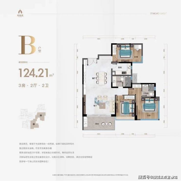 -116-146㎡三至四房:4.5米阔绰客厅,餐客独立分明,空间实用主义与仪式感并存。