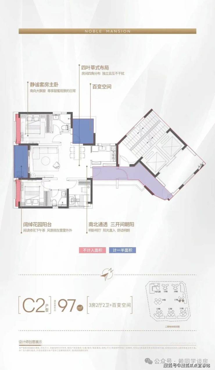2梯4户、百米楼距、楼王C位、俯瞰6万平园林