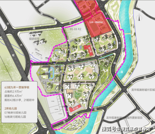 在教育方面,项目周边多所学校环绕,本项目规划有2所幼儿园、1所63班九年一贯制学校。周边汇聚观澜中心学校(九年一贯制)、观澜第二中学、龙华高级中学观澜校区。(学校以教育局划片为准)