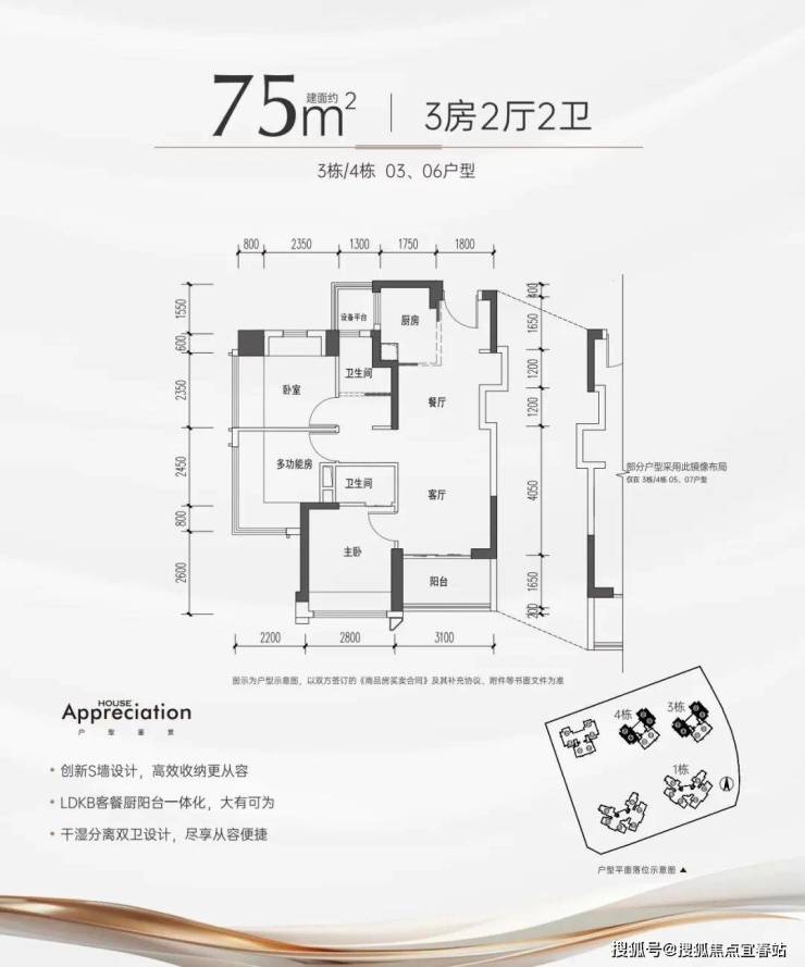 一共8条腿,选择比较丰富。70-80平户型在市面上有楼盘在售,但基本为3房1卫或2房1卫,溪山禾玺基于新规设计优势,75平直接升级为3房2卫,具备功能全的同时还压低了总价。