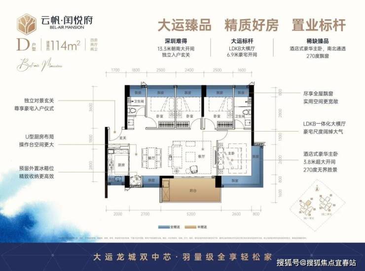 ◦ 114㎡四房:7.9米横厅+12.48㎡跑道阳台,得房率98.5%,区域稀缺,总价约460万,满足多孩家庭需求。