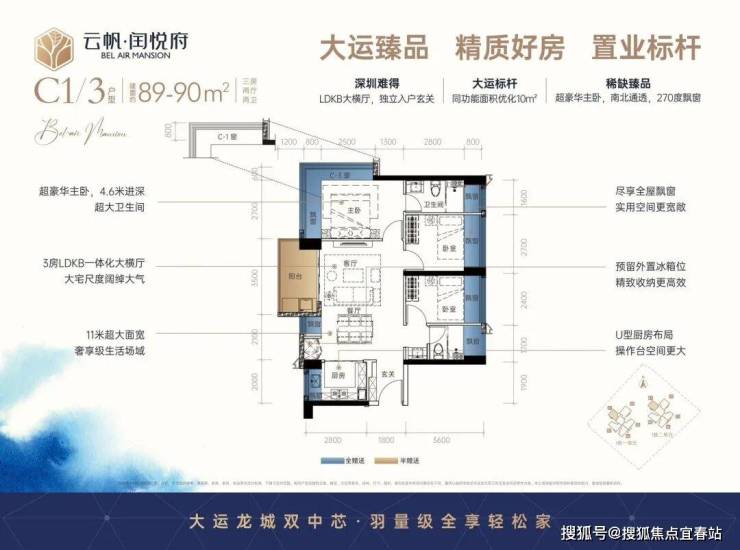 ◦ 89㎡三房:竖厅/横厅双版本,四开间朝南,LDKB一体化设计,赠送面积达16-17㎡,总价约330万,适合三口之家;