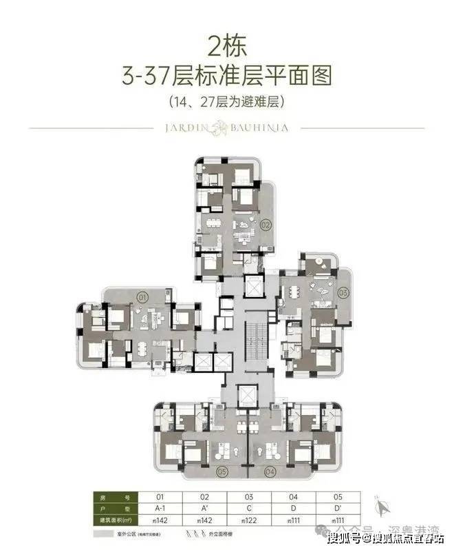 湾啟紫荆位于前海妈湾听海大道,占地约1.5万㎡,住宅建面约6.6万㎡,容积率5.14,共有三栋住宅组成,层高36-37F,共485户,车位595个,车位比1.1.2,4梯5户,主推约96㎡稀缺三房、111㎡3+1房、122㎡四房、142㎡四房。户型设计了大客厅、宽景阳台、阔景飘窗等,拥有山海河多重景观资源,计划品质精装交付。户型采用建筑新规设计,户户大阳台,4梯5户,分布式电梯设计,独立电梯厅。