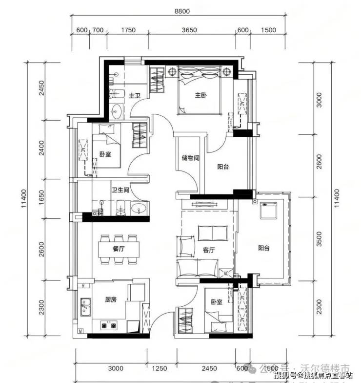 ✅高清户型图电子档(标注尺寸+采光分析+公摊面积)