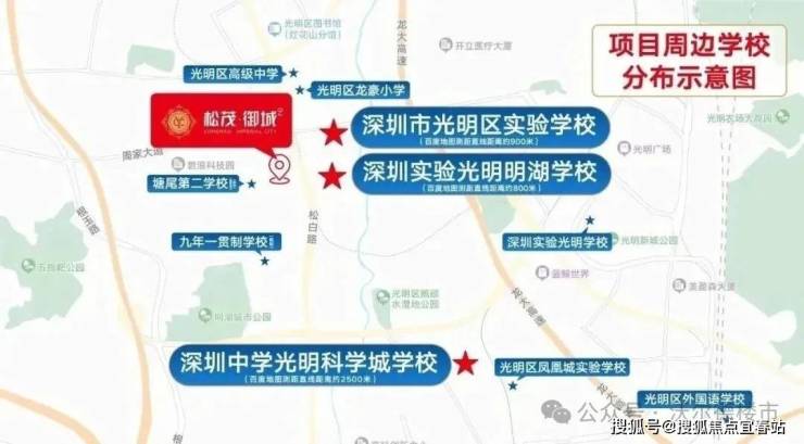 小学学区划分在教科院实验小学,秋硕小学,光明实验学校;初中学区划分在深圳中学光明科学城学校及凤凰城实验学校初中部。