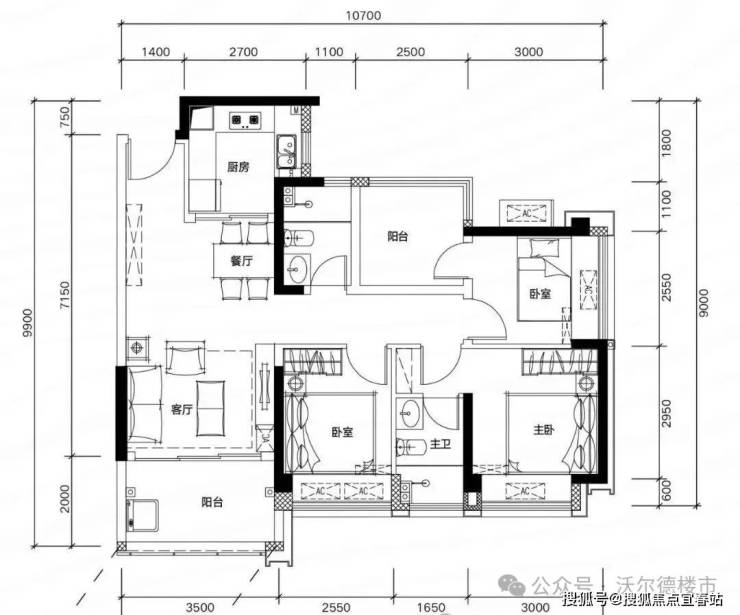 ✅ B06 户型:约109㎡ 阔绰四房两厅两卫: