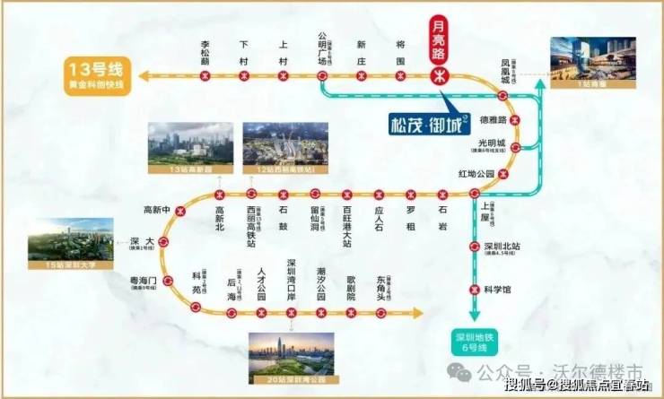 距离在建的13号地铁月亮路站约400米,1站到凤凰城,3站到光明城站,计划在2025年底通车运营。