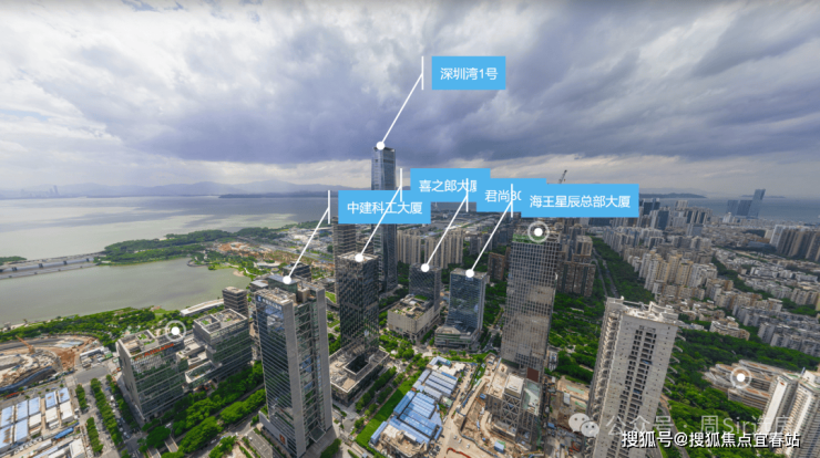 通过航拍图可看到,东侧的阿里巴巴大厦(78.4米)、中科建工(162米)。如果层高和深湾玖序一样(3.3米),算上底商和会所的高度,大概24层以上就有不错景观。
