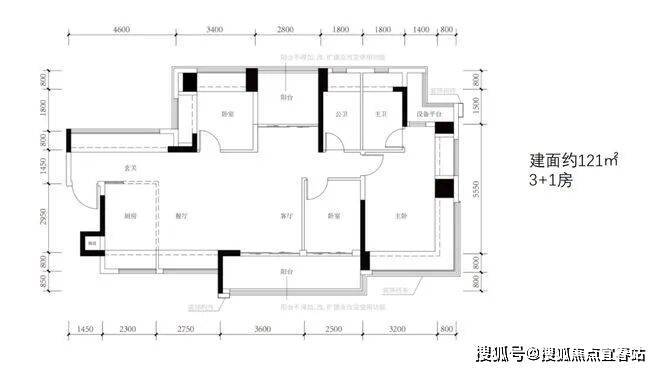 三、建面约121㎡户型:堪比旧规140+㎡户型