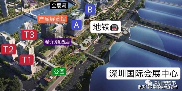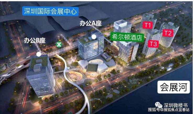 项目定位为约36万㎡会展商务综合体,为深圳会展湾首发之作。项目由全球知名设计事务所Gensler整体规划设计,紧邻新展馆入口及地铁口,规划物业包括约6万㎡会展精品公寓、7万㎡希尔顿星级酒店群、8万㎡高端甲级商务写字楼和4.6万㎡产业展贸馆,将打造为领跑湾区的会展CBD。